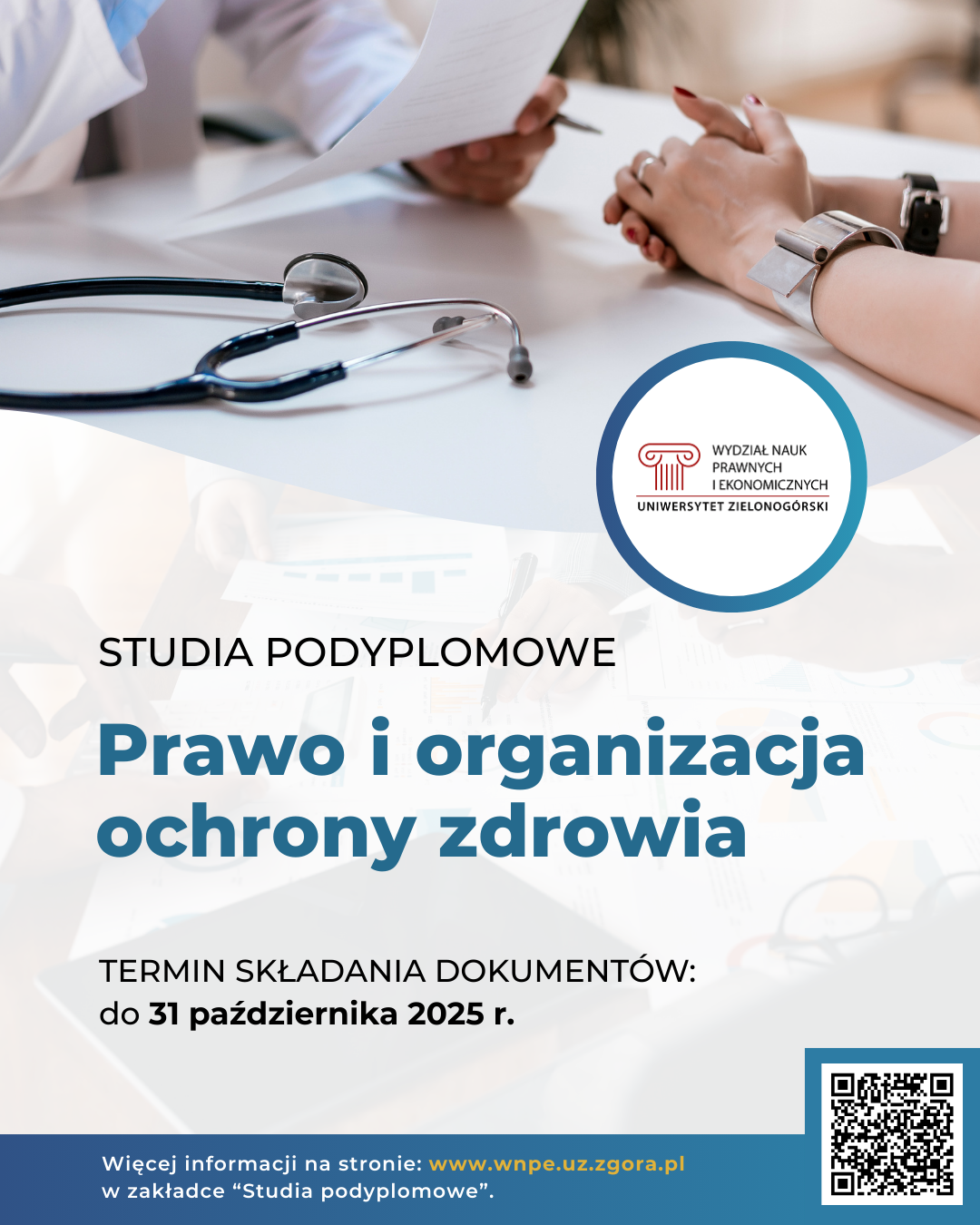 Przekazujemy informację na temat studiów podyplomowych „Prawo i organizacja ochrony zdrowia” których już III edycję będzie realizował w 2025/2026 roku Uniwersytet Zielonogórski.