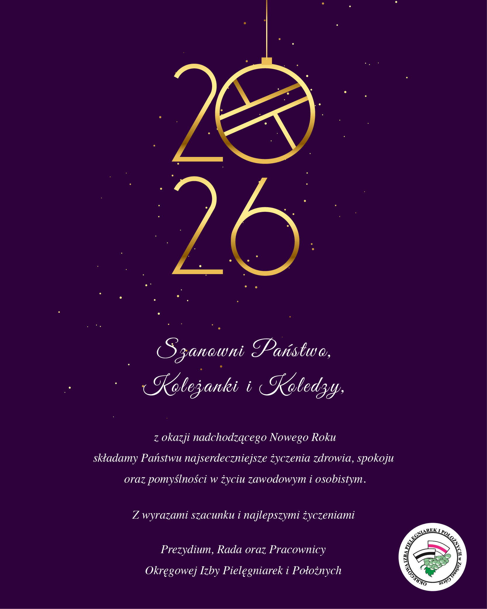 Szanowni Państwo, Koleżanki i Koledzy, z okazji nadchodzącego Nowego Roku składamy Państwu najserdeczniejsze życzenia zdrowia, spokoju oraz pomyślności w życiu zawodowym i osobistym. PoprzedniNastępny